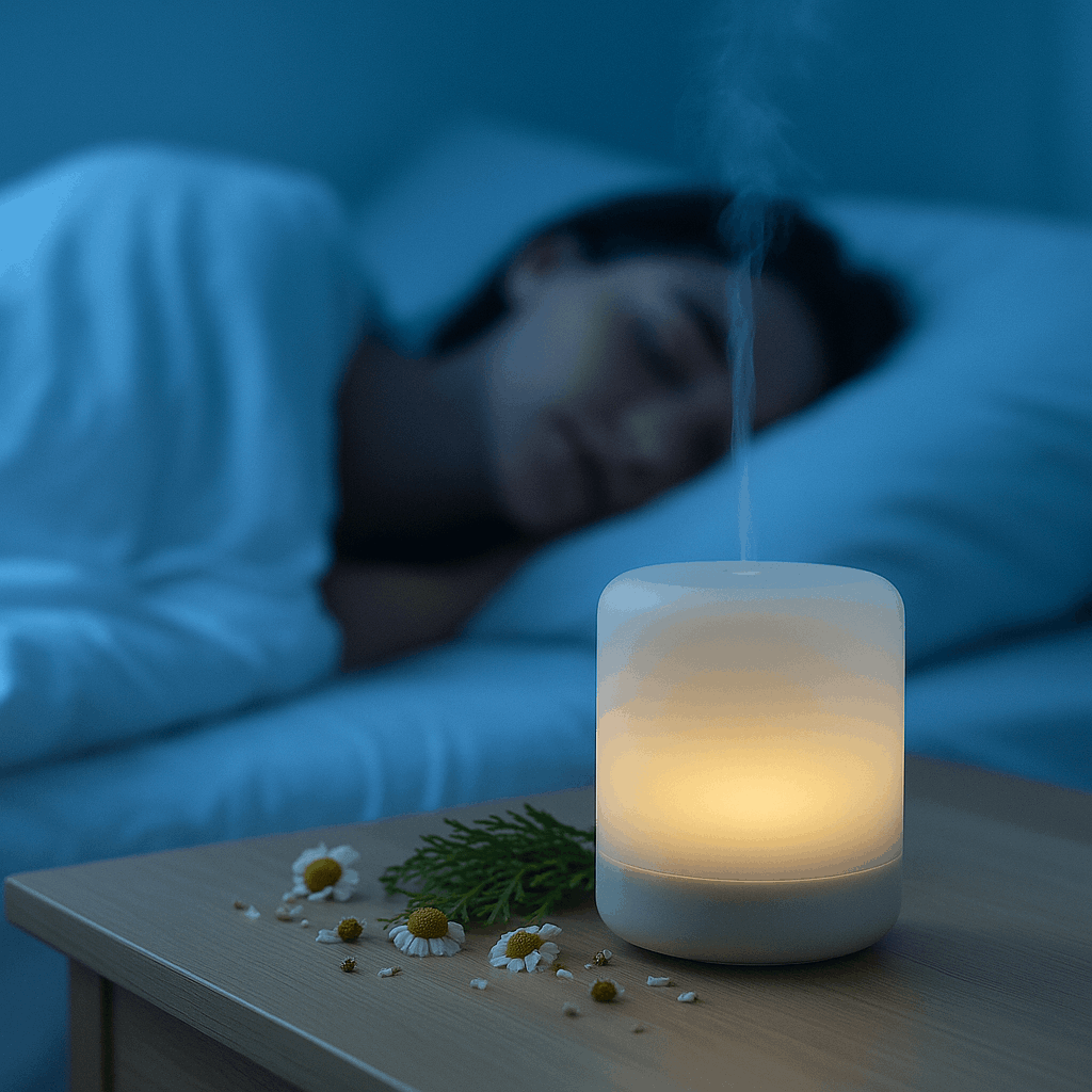 O difusor de Camomila & Cedro complementa o ambiente, criando uma atmosfera de sonho e leveza.